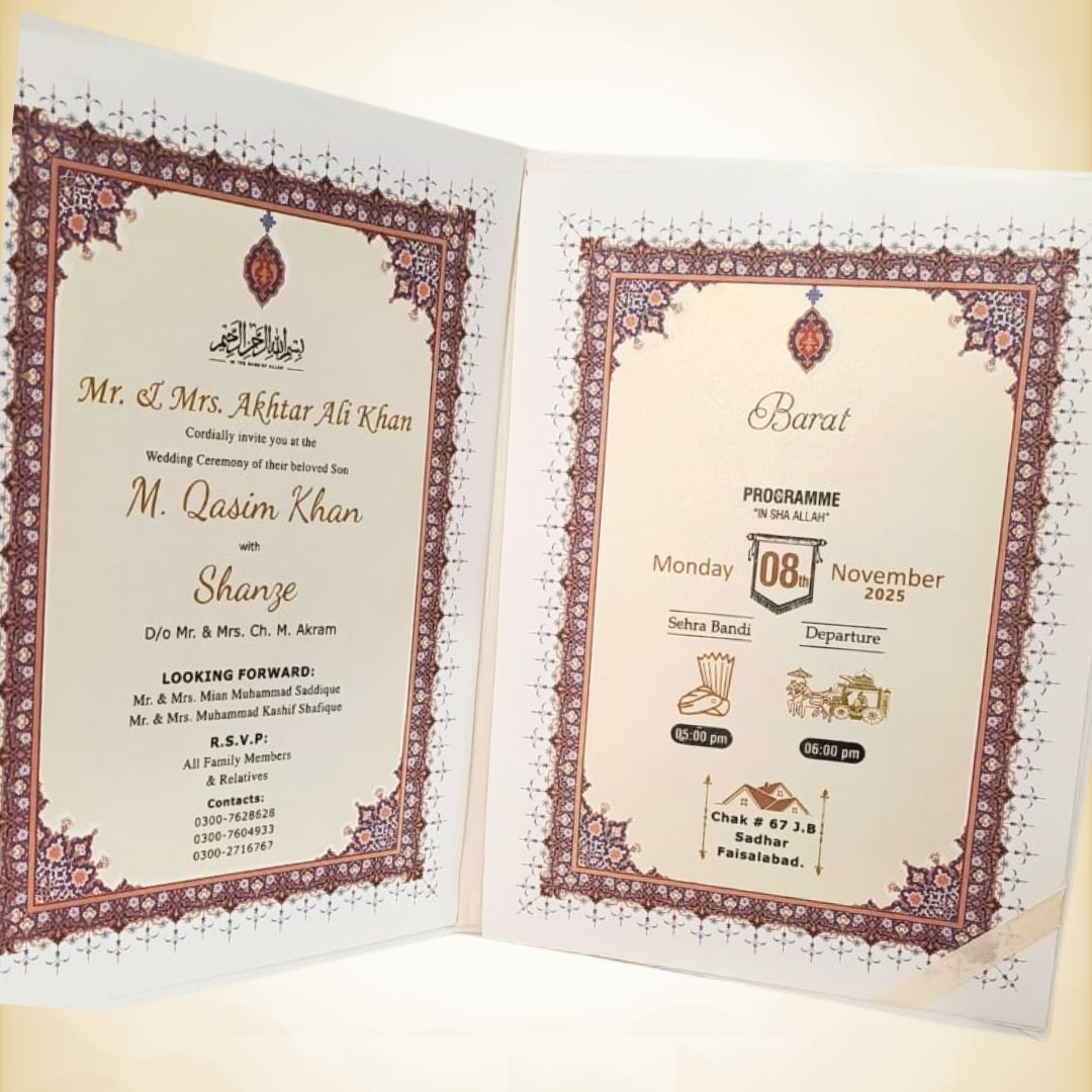 Elegant, graceful, and traditional Luxury wedding cards that are timeless and suitable for every family and occasion.