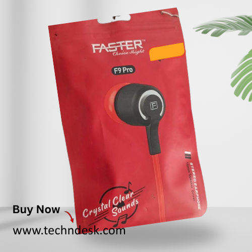 Faster Handfree F9 also delivers clear, powerful sound with deep bass and a comfortable in-ear fit. Designed for music lovers and daily callers, it offers crisp audio, a built-in mic, and a tangle-free cable for everyday convenience as well.