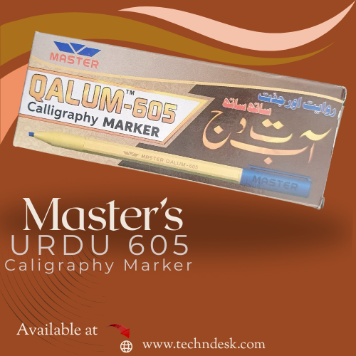 Calligraphy 605 Urdu marker with a chisel tip for elegant and artistic Urdu writing. Ideal for creative projects, posters, and handwriting practice. (Price for the 2 boxes)